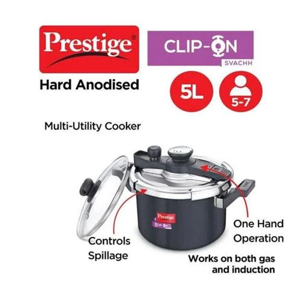 The Prestige Clip-on Mini Svachh Pressure cooker range is modular in design, which means you can use the same lid on all utensils in the range.
