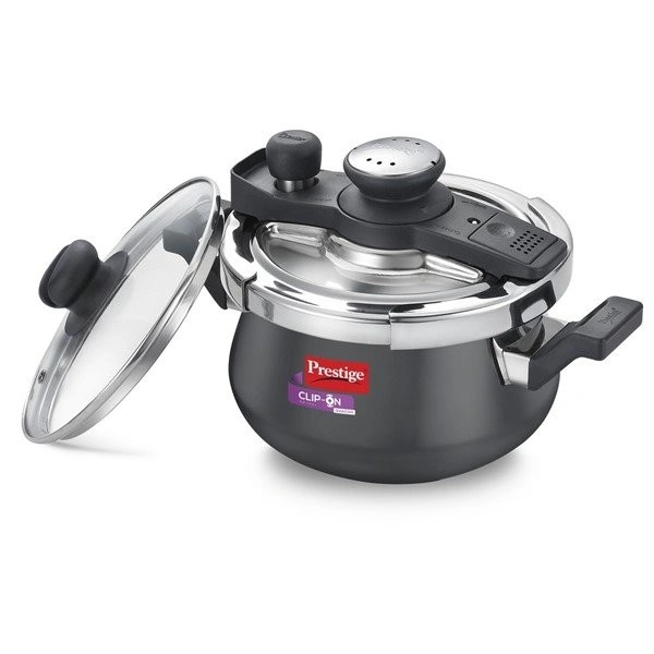 The Prestige Clip-On Svachh pressure cooker range is modular in design, which means you can use the same lid on all utensils in the range.