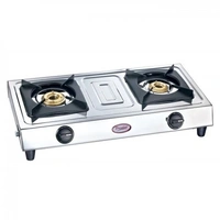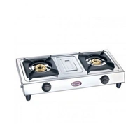 Gas stove type: Manual; Burner material: Brass; Size of the burner: 1-Small, 1-Medium; Material of the body: Stainless Steel; Material of the top: Stainless steel; Size of the gas stove (in cm): 67 cm x 34 cm x 8.5 cm; Colour: Metallic Silver