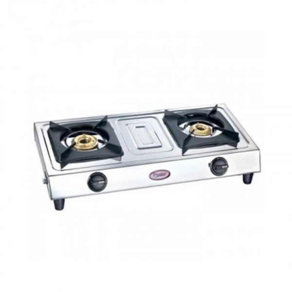 Prestige Star 2 Burner Gas Stove, Manual Ignition, Metallic Silver