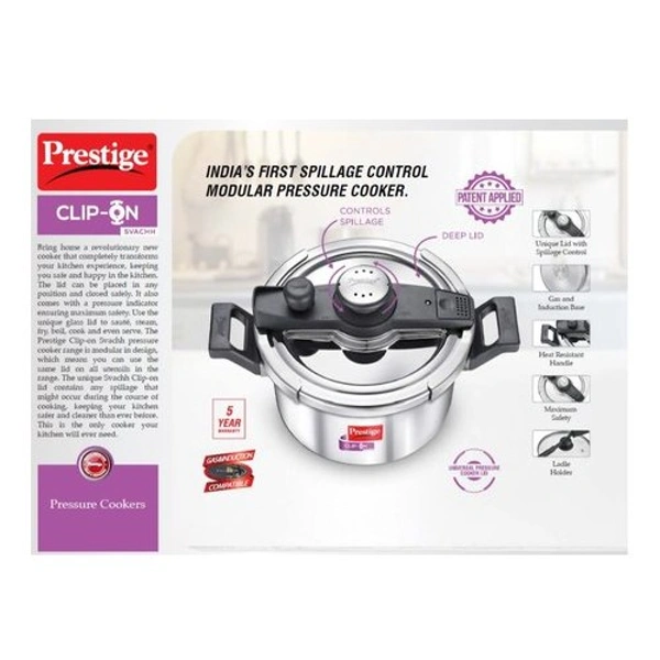 Prestige Stainless Steel Svachh Clip-on 5ltr Cooker