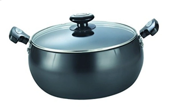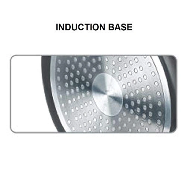 - Material: Hard Anodised Aluminium; Size: Sauce Pan (200mm); Base type: Induction Base; Base thickness (in mm): 3.25; Included components: 1 Sauce Pan; Colour: Black