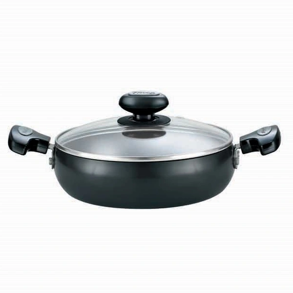 - Material: Hard Anodised Aluminium; Size: Saute Pan (240 Mm); Base type: Induction Base; Base thickness (in mm): 3.25; Included components: 1 Saute Pan; Colour: Black