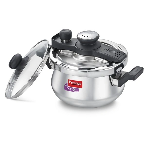 The Prestige Clip-On Svachh pressure cooker range is modular in design, which means you can use the same lid on all utensils in the range.