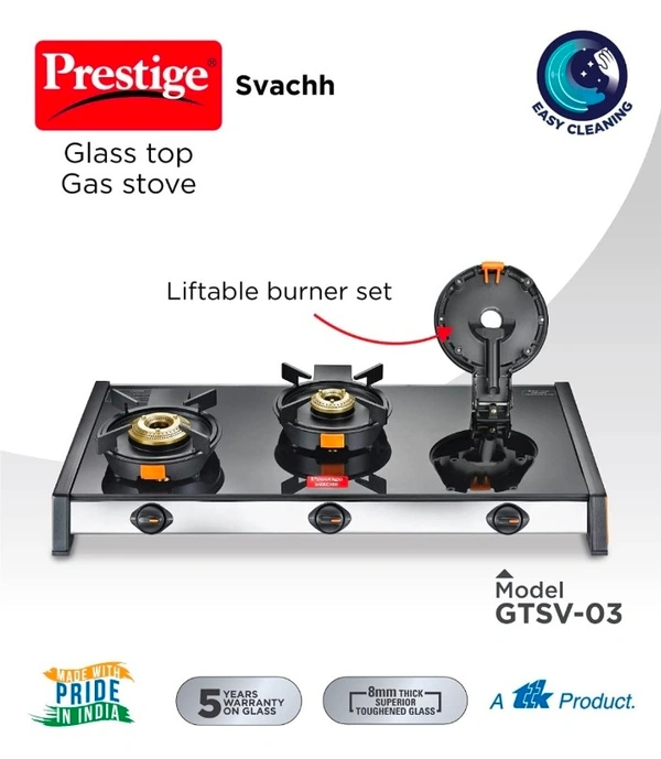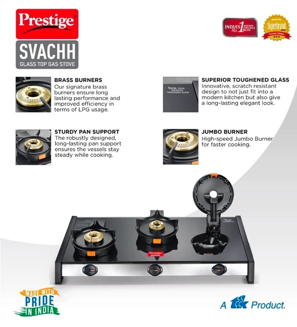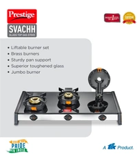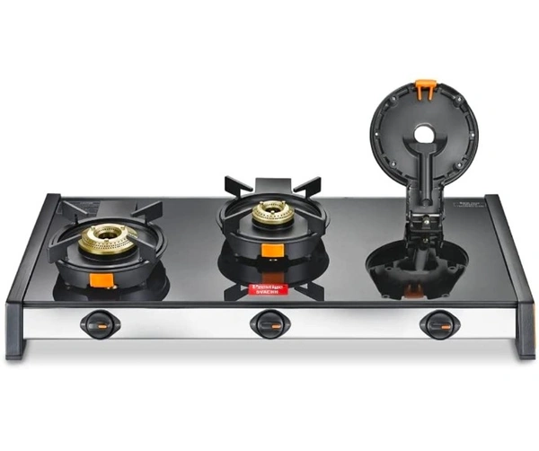 Svachh GTSV-03 Glass top LP Gas Table, 3 Burner, With Liftable Burner Set