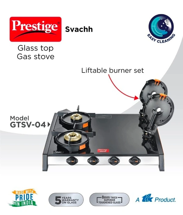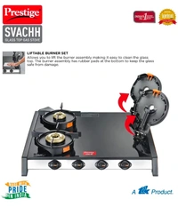 Svachh GTSV-04 Glass top LP Gas Table, 4 Burner, With Liftable Burner Set